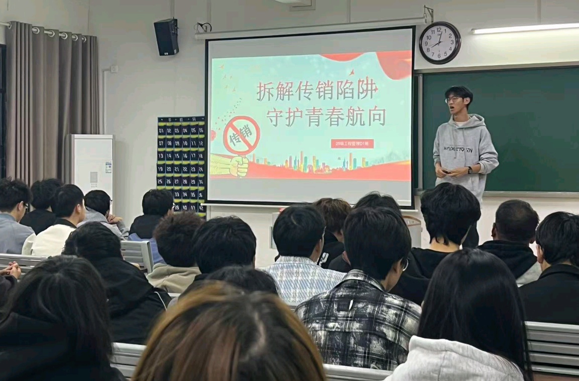本次活动以“筑牢安全防线,远离传销陷阱”为核心,旨在通过集体学习的形式将反传销教育融入员工们的日常生活中。各班班会形式多样、内容详实,班委们精心准备了PPT和案例视频,向同学们系统拆解了传销活动的常见“套路”,如“高薪诱饵”、“情感绑架”、“虚假项目投资”以及“拉人头”的层级计酬模式等。通过对这些典型特征的分析,同学们对传销的欺骗本质和严重危害有了更清醒、更深刻的认识。