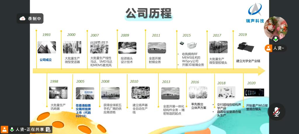 宣讲会上,企业负责人详细介绍了瑞声科技发展概况。作为全球精密制造龙头企业,公司1993年成立、2005年香港上市,在声学、光学、电磁传动、精密结构件、射频天线等领域技术领先,多项产品获评国家级制造业单项冠军,在全球19个城市设有研发与制造中心,行业地位突出、发展空间广阔。
