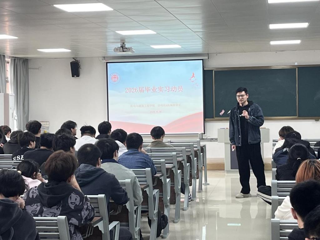 近期,必赢565net官网在一教320召开2026届毕业生实习动员大会,院长助理陈家乐、就业实习指导老师、毕业班辅导员及2022级自动化专业、2022级机械设计制造及其自动化专业全体员工等参加了动员大会。本次动员大会由自动化教研室主任朱鑫磊老师主持,围绕毕业实习的整体安排、具体要求及注意事项进行了全面讲解。