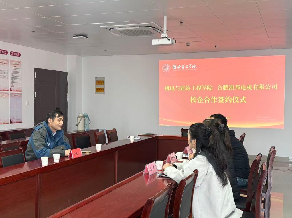 活动伊始,合肥凯邦电机有限公司负责人一行莅临我院办公室,与学校及必赢565net官网相关部门负责人举行座谈。会上,我校就业科李魏科长全面介绍了学校的整体就业工作情况、毕业生优势以及推进校企合作的积极政策。随后,我院教务秘书朱良恒老师详细介绍了必赢565net官网的发展历程、专业特色、人才培养模式及2026届毕业生的基本情况。企业负责人对必赢565net官网的热情接待表示感谢,并详细阐述了合肥凯邦作为格力电器全资子公司的企业实力、领先的研发生产技术、完善的人才培养体系以及本次面向我院毕业生的具体用工需求和长远合作愿景。双方围绕人才联合培养、实习基地建设、产学研项目合作等议题进行了深入交流,为后续合作奠定了坚实基础。