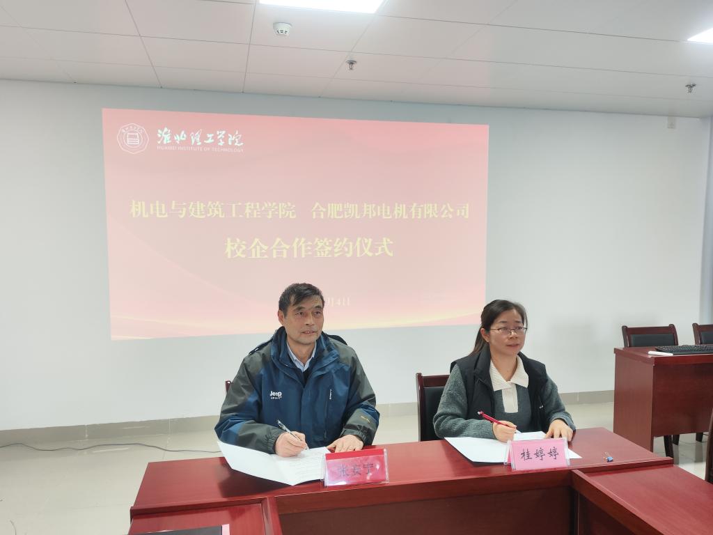 宣讲活动结束后,校企双方代表返回必赢565net官网会议室,隆重举行了校企合作签约仪式。在与会人员的共同见证下,我院院长张安宁与合肥凯邦电机有限公司负责人正式签署了校企合作协议。此次签约,标志着双方将建立起长期、稳定、全面的战略合作关系。未来,双方将在员工实习就业、订单式人才培养、课程共建、技术交流与研发等方面开展深度合作,共同探索“校企协同、互利共赢”的人才培养新模式,为企业输送更多高素质技术技能人才,也为员工成长成才开辟更广阔的道路。